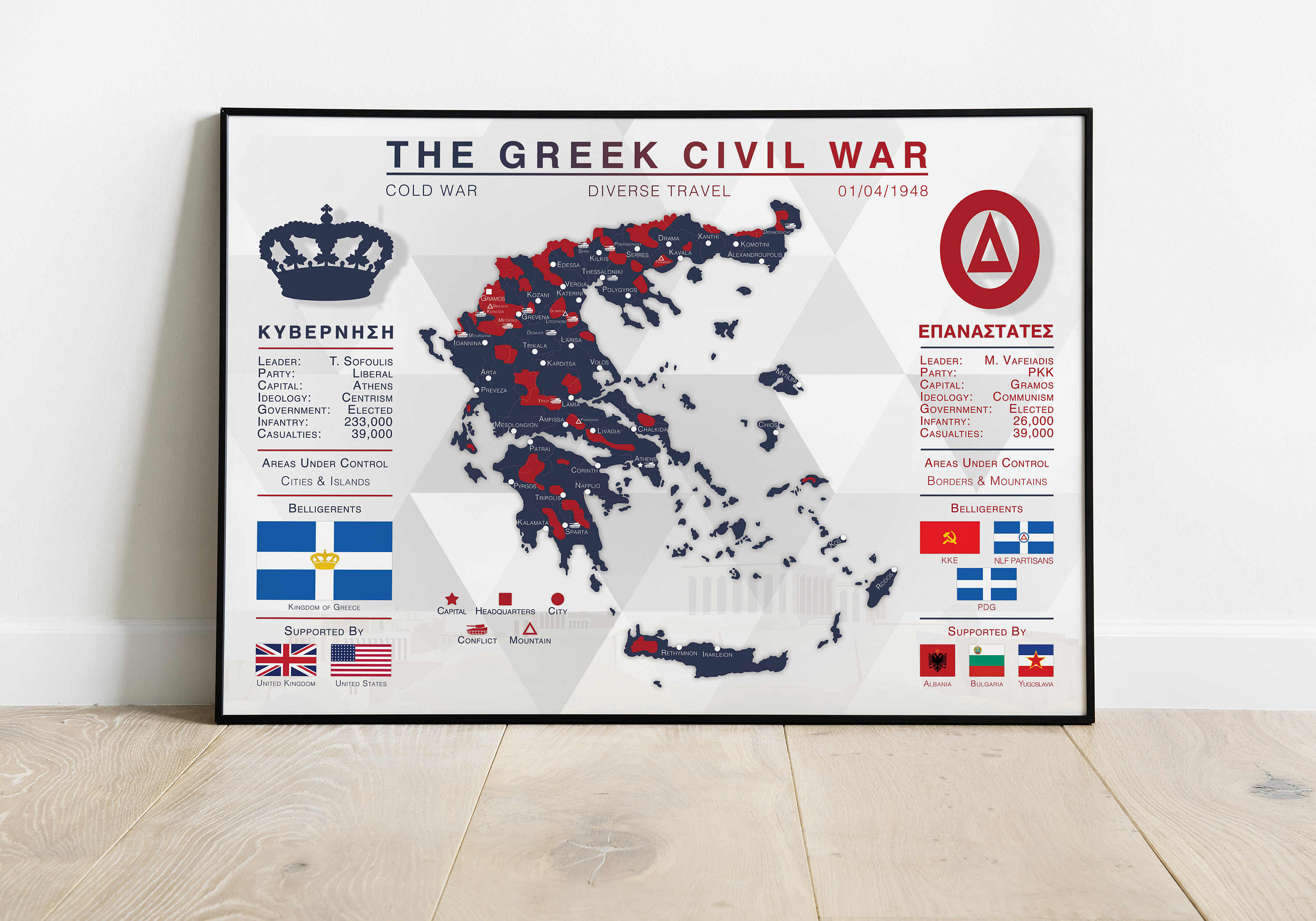 De Griekse Burgeroorlog Kaart Print Etsy België