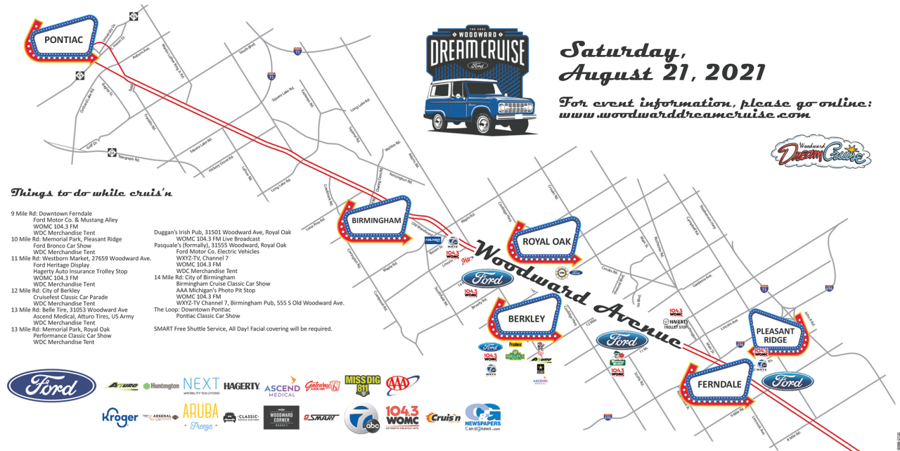Map Of Woodward Dream Cruise Official WDC Schedule of Events & Road Map Woodward Dream Cruise: The Cruise is the world’s largest one day auto event. (Photo by Bill Pugliano/Getty Images) (Bill Pugliano, 2002 Getty Images) DETROIT – The 2024 Woodward Dream Cruise is Saturday, August 17. . According to the Woodward Dream Cruise’s official website In Pontiac, public lots and parking garages dot the map around the downtown area, where the cruise will come to a close amid a .