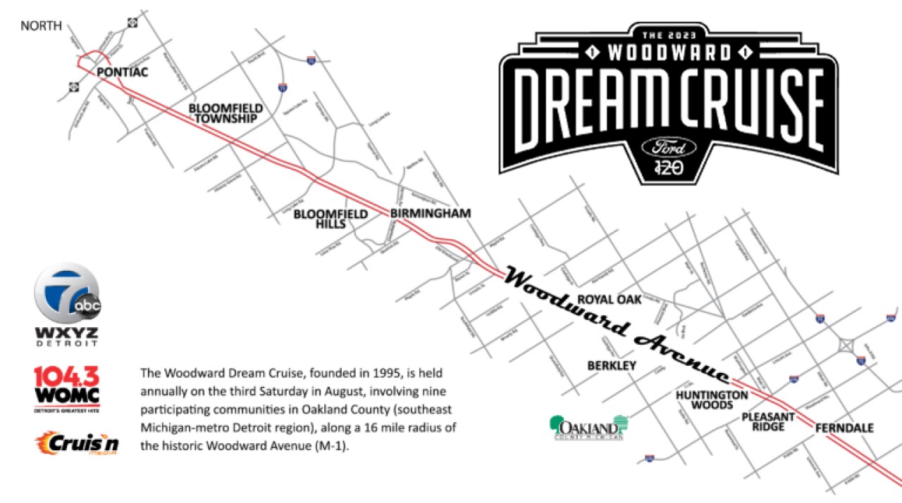 Map Of Woodward Dream Cruise – Whether you’re cruising Woodward or a car fan watching on the sidelines, appetites will certainly rev up for the annual Woodward Dream Cruise happening this Friday-Saturday. More than a million . This Saturday, the annual Woodward Dream Cruise kicks off, shutting down Woodward Avenue from Ferndale to Pontiac. Here is what you need to know. .
