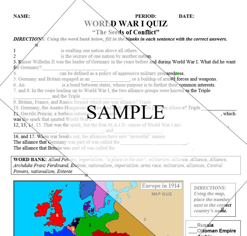 WWI: EUROPE/NORTH AFRICA MAPPING EXCERCIZE AND QUIZ by A TOUCH OF